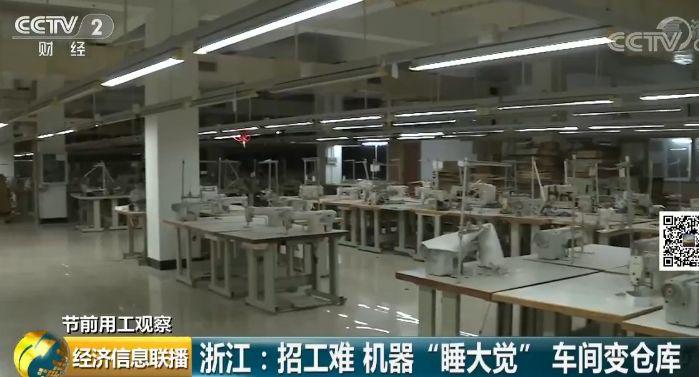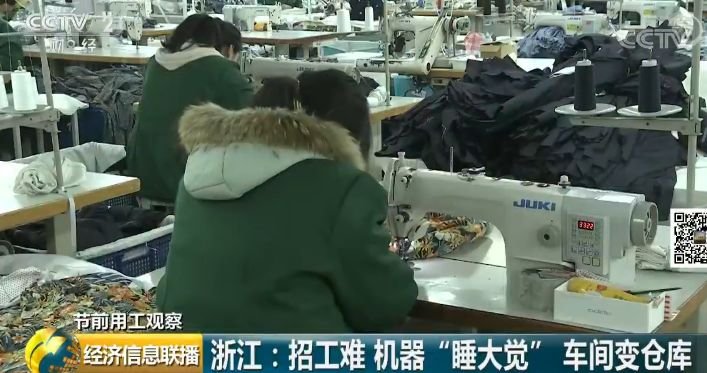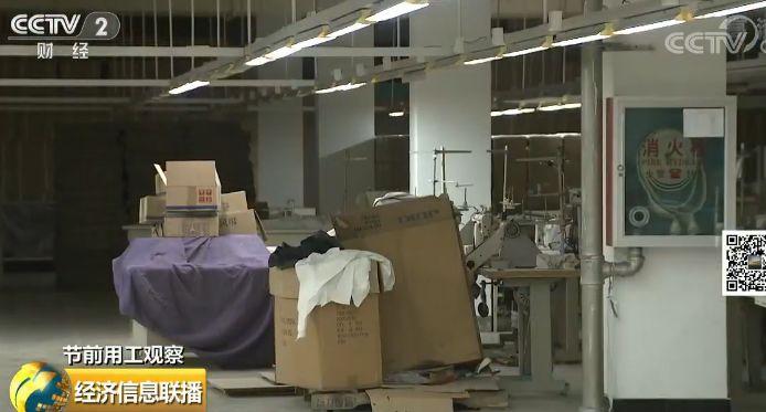 在浙江绍兴一家服装加工厂,负责人告诉央视财经记者,订单已经排到了五月份,马上就要到春节了,为了不耽误交货,近期一直在组织工人赶工。但是就在隔壁车间,记者却发现只有机器没有工人。