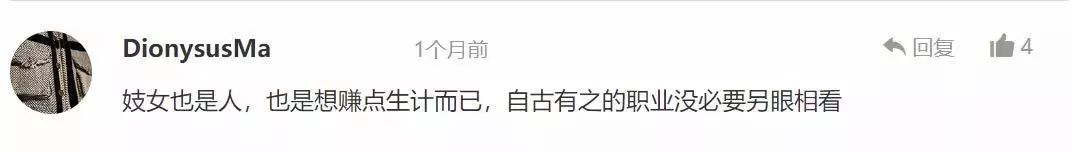 “妓女也是人,也是想赚点生计而已,自古有之的职业没必要另眼相看”
