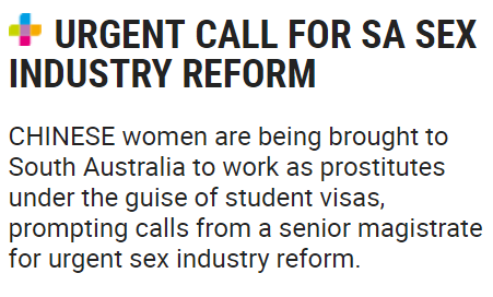 除了用学生签证赴澳卖淫,澳媒也曾曝光过持旅游签证来澳卖淫的的两位中国女子。