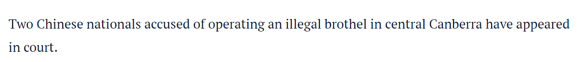 这两名中国大妈,被控在堪培拉经营非法妓院,曾去年十月于当地出庭,