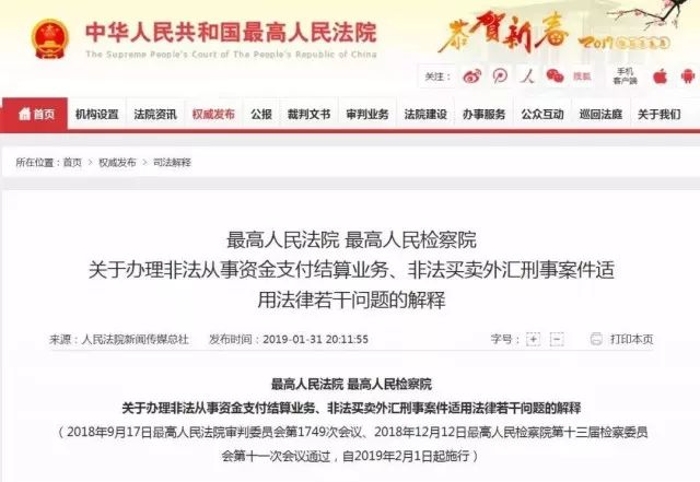 如果说罚款150万并不算大事,现在就没那么简单了。根据这个最新《解释》,从2019年2月1日起,超过500万人民币就可能以非法经营罪定罪,除了罚款,还可能处五年以下有期徒刑或者拘役,超过2500万人民币的,可能处五年以上有期徒刑。