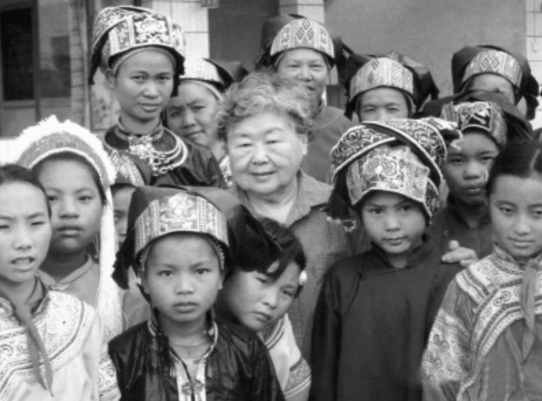李桓英在云南,与被治愈的麻风病患者和孩子