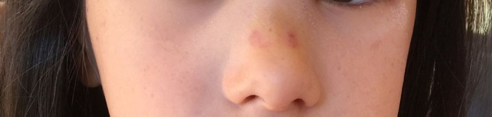初步诊断为骨裂,一个月内必须小心轻捏,这是摔后的第二天,接下来的一个星期鼻翼两侧全部青肿