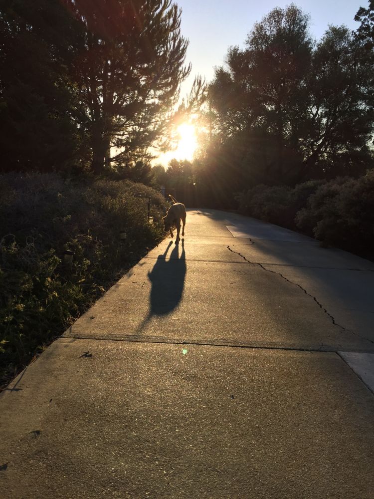 有一天我开车出门,看见嘟嘟在车旁边跟着车奔跑,看见有个家伙关心你,送你出门,心里还是挺高兴的。于是我打开车窗,向他挥挥手,“嘟嘟,不要送了“,看见他停了一下,左右看看,又跟着跑。我又挥挥手,“回去吧”,他又停了一下,再跟上来。