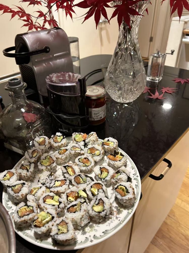 哇塞,江歌亲美厨娘的美食太惊艳了,色香味俱全,难怪大宝和阿敏被滋养得如此优秀!炒鱿鱼、沙拉、蒸鱼和寿司都是我的菜哈,我偷偷端走了…哈哈,小宝也想偷吃美食,太可爱了!谢谢江歌亲的慷慨呈现。
