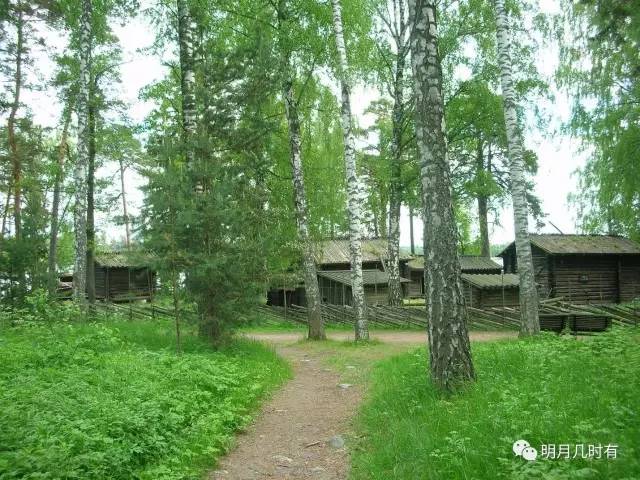沿着森林中的小径一路向前,沿途不断看见古老而矮小的木屋,掩映在树丛之间,这些都是数百年前芬兰人的居所或是农舍,仿佛时光倒流,返璞归真,清新的田园气息迎面扑来。