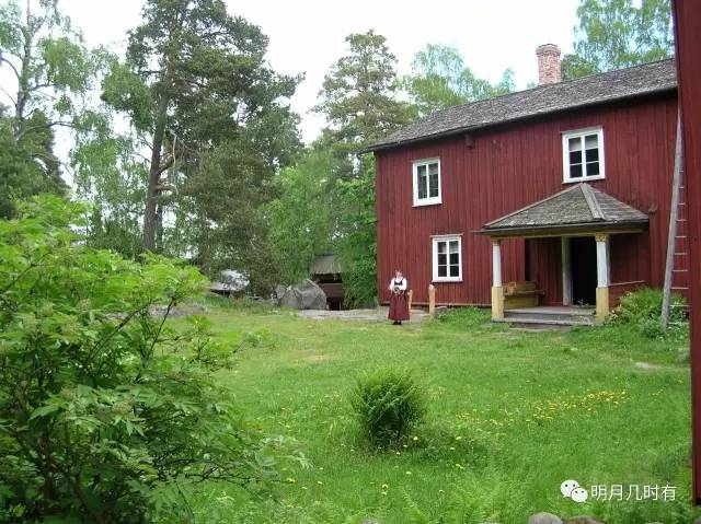 身着传统芬兰农村服饰的女孩(公园管理人员),行走在房前屋后,为这些古老的民居带来了生气。