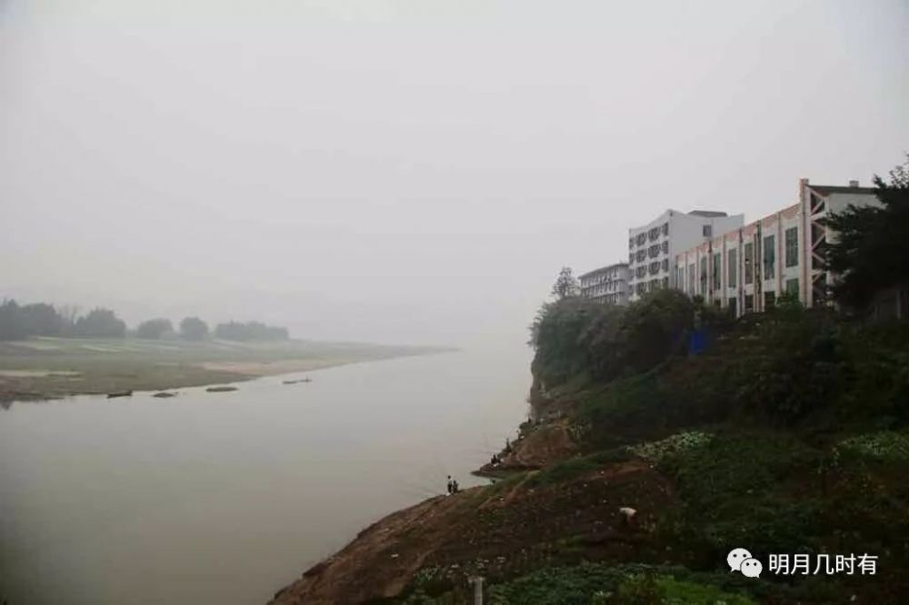 学校校门的后面是一个天井,沿着左边的走廊紧接着一堵白墙和对面的一间大而长的学校办公室相连。白墙的中间有一道门,进得门来,隔着一条石板铺砌的走道,首先映入眼帘的是一座两层楼的洋楼。洋楼的对面是一个大操场,隔着操场是一个古庙大殿式的威峨建筑,中间的牌匾上写着四个十分醒目的大字“文教昌明”,高出操场7 - 8米。有一个大石梯从操场起步,拾级而上,穿过位于两边的教室之间的狭长走道,再经过一个石梯就达到饭厅。饭厅很大可以容纳全部初中与高中的男生在内用餐,中间还有一个天井,开饭时,天井边摆放着热水桶以供饭后洗碗之用。饭厅的左边是一个大操场可以容纳3个蓝球场,在球场之外就是县城的城墙,其间还设备有一些田径和体操的运动器材如单双杠,跳高,跳远等。在远离这些体操设施的另一端,紧靠城墙边有一个由三合土作出的台子,我和很多初中同学经常站在台上观赏城墙外的牛角坝与绕坝奔流的淯江和长江。那时的江水完全没有工业污染,清澈可爱。