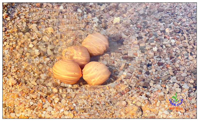 在山溪之间,一个免费的自流温泉,地下的泉水由沙子间涌起,清晰带点硫磺味,环顾四周,毫无人气。查了一下这个泉水的温度,大概是51度,恰好是慢煮鸡蛋的最佳温度。拿起几个鸡蛋,放在泉口之上,一边泡着温泉,慢慢的等待着。