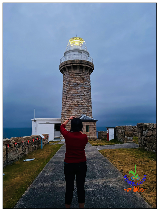 最后500米陡坡冲刺,下午四点半,见到了美女村官,问有什么事? 我答要T骨牛排,五分熟,她竟然有点羞答答的样子,我大脑忽然浮现王妃戴安娜年轻时的模样,疲倦的双腿顿时来了力量,赶紧邀请她导游灯塔。灯塔1853年由英国流放犯人建造,塔高19米,服役至今。