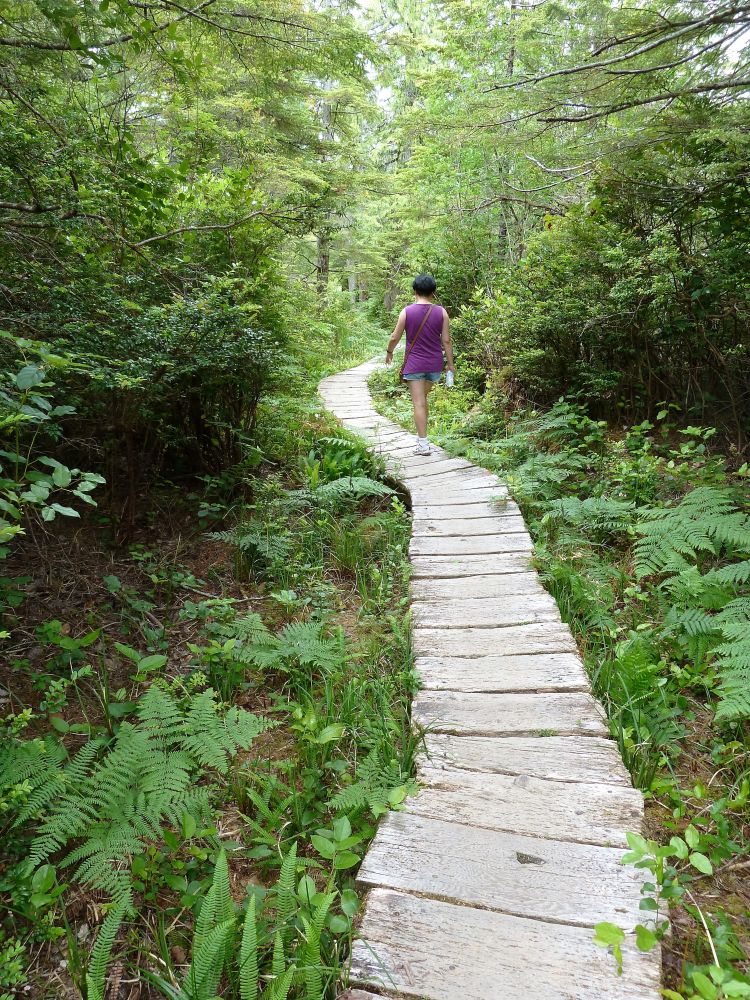 吃过早饭,收拾妥当,前往下一站:Ozette (链接: Ozette - coast)。路上用了一个多小时。今天的计划是走 Ozette 的 Sand Point Trail。该步道往返约6英里,这是一个比较平缓的步道,有木板路,要注意防滑,可以一直走到海滩,再原路返回。如果你的体力不错,还可以选择沿着海滩往北,一直走到 Cape Alava Trail 的终点,再经此返回出发点,等于画一个等边三角形,全程约10多英里。(Pic 10-12)