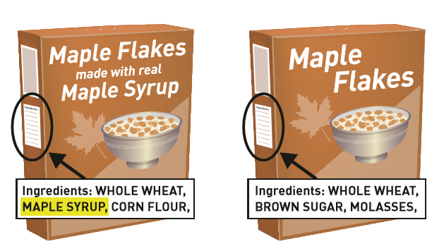 其实并不是每个人都关心是否食物里实际包括一种特定的成分,对有些人而言,只要味道对路就行。如果你不想要一个你喜欢的味道是用替代品做的,例如你想要你的食品里含有真正的枫糖浆,那你会在食品包装的成分表(Ingredients list)上找到你需要的信息。