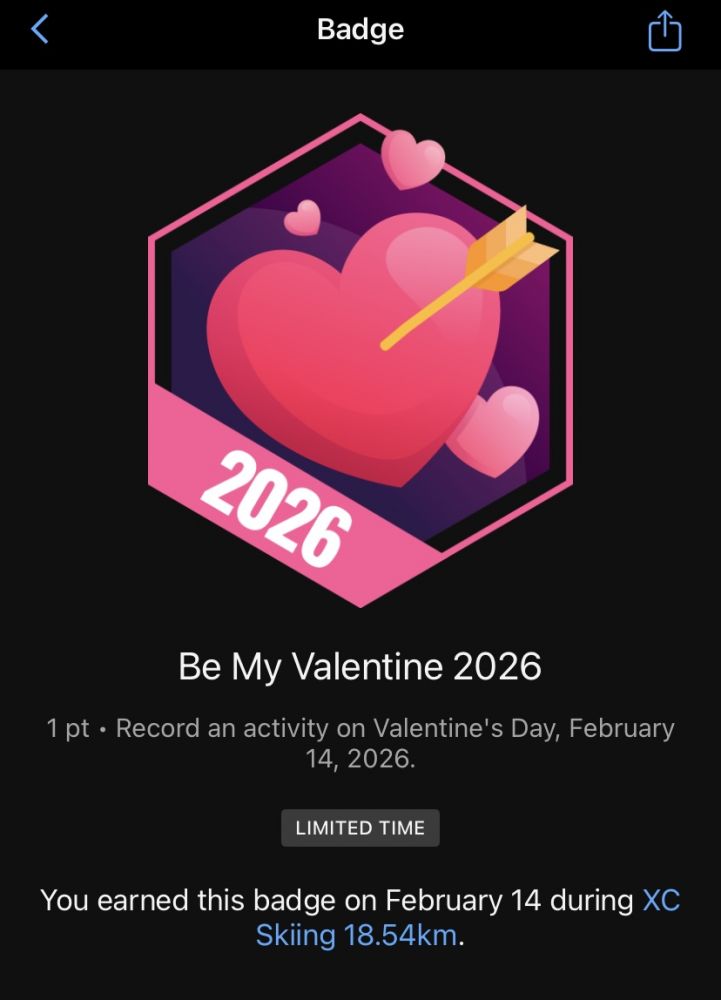 情人节刷个纪录是应该的,耗时两小时三十七分钟。跟训练跑步一样,XC滑雪距离增加也得一点一点的加。昨天长距离之后,今天来个养生滑,不求速度,只求去滑就行,10.5km,要不然直接拉爆。