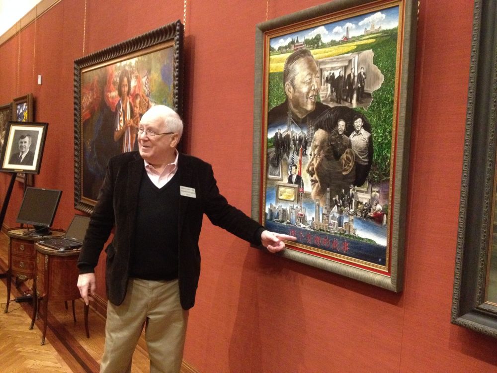 5月24日中午,在美国爱荷华州华人协会执行主席燕晓哲先生引见下,我们一行五人,在爱荷华州首府得梅因市阮氏大厦的顶层俱乐部餐厅,参加了由奎因大使主持的小型午餐会。奎因大使生动地讲述了他的故事。