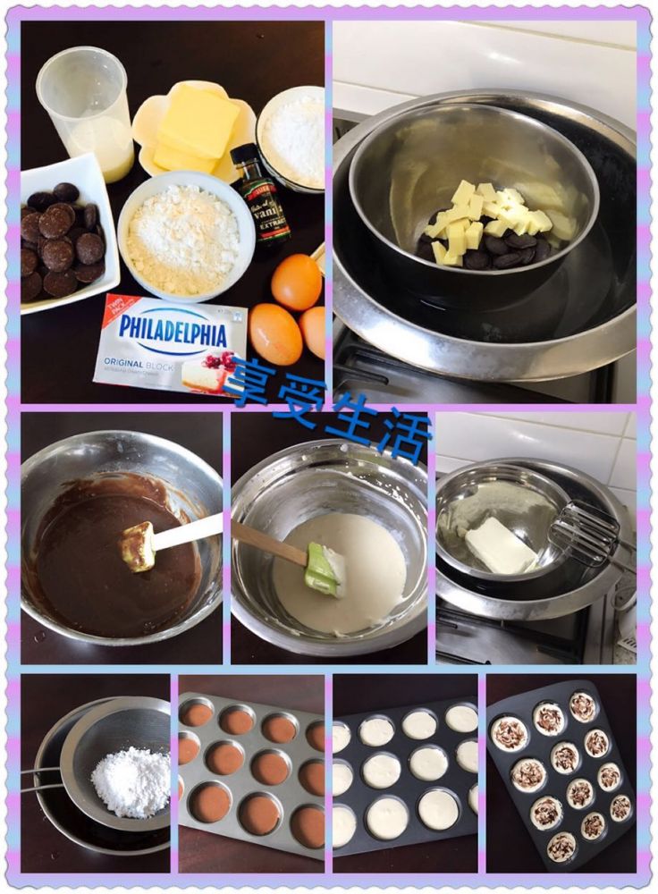 巧克力糊:黑巧克力200克,黄油250克,鸡蛋150克,糖200克,盐1.5克,香草精6克,高筋粉(或者中筋面粉)100克