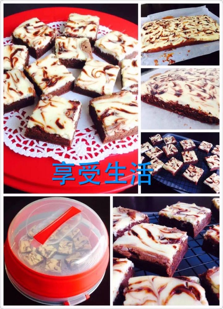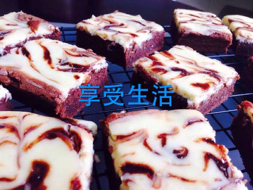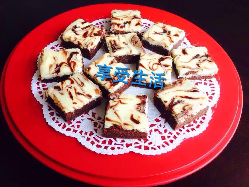 圣诞节、新年即将来临,分享简单易做的大理石布朗尼甜品。这款甜品很适合节日和寒冷冬季食用。传统的布朗尼制作时候,不需要打发黄油,也不要加泡打粉。因此,布朗尼的质地是绵密而细致,口感外层微脆而内部柔软。用最足量的黑巧克力和奶油奶酪做出的大理石布朗尼,有绵软的口感,细细品味,一小块就足以令人陶醉。为了健康我选用黑巧克力,但是热量也是惊人的,足以让任何一个减肥的人失控^0^