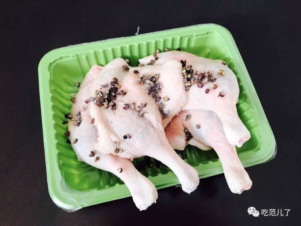 3.将鸭腿上均匀的抹上薄薄一层盐和花椒,包入保鲜袋中,放冰箱冷藏室1天