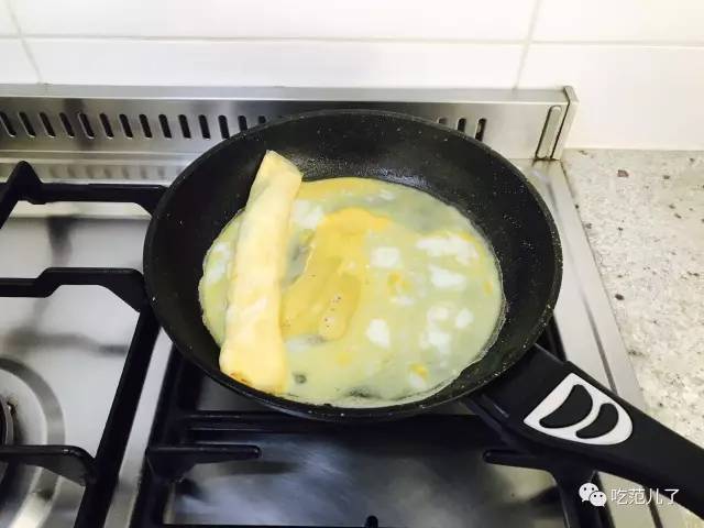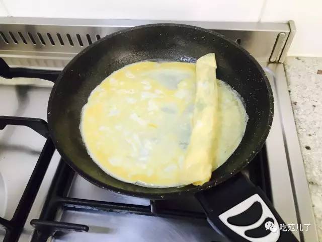 3.放入蛋液要等蛋液稍稍凝固再开始推卷
