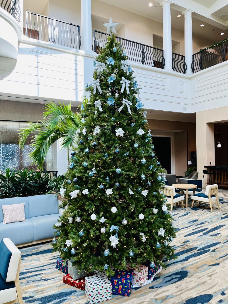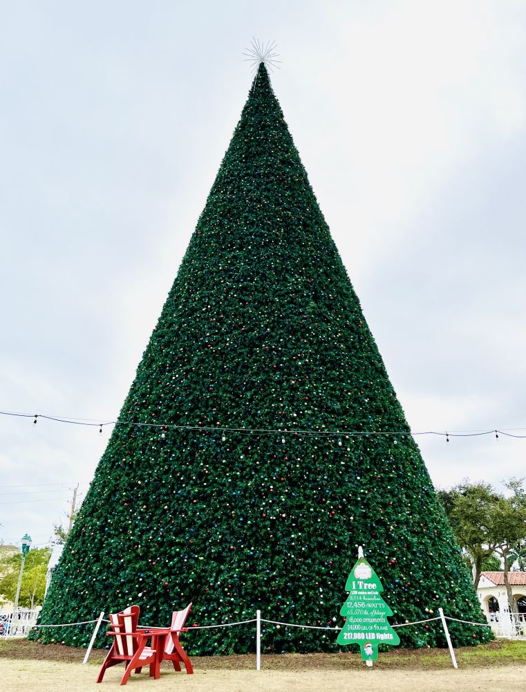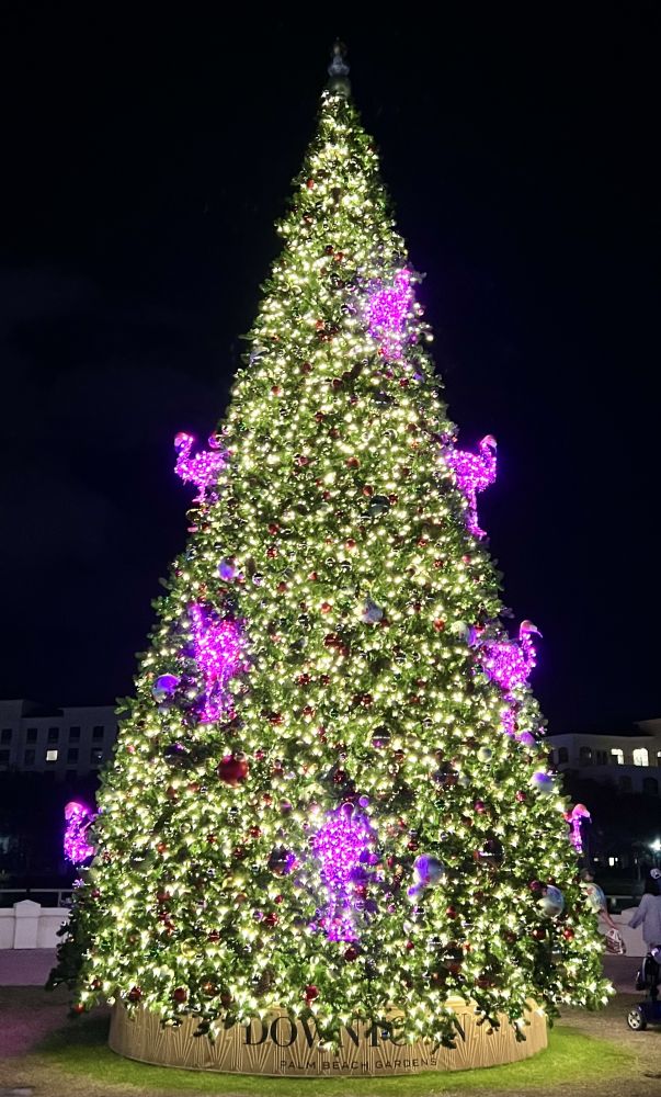 下午来到Delray Beach,Delray Beach 是一个人口六万多的滨海小城,位于Miami以北50英里处,属于Miami大都会地区。小城有三英里长的优质海滩,但我们来这里主要是为了看那个位于市中心Old School Square上的圣诞树,这棵圣诞树高100英尺,非常罕见,要知道纽约市Rockefeller Center前面的那棵最高的年份也就100英尺。每年11月底Old School Square有个亮灯仪式,标志着年底节日庆祝的开始,这个活动开始于1993年,至今有29年了,算是当地的一个传统庆祝项目。今年圣诞树用了15570磅的仿真树叶,18000个挂件,217980个LED灯,灯线长达13英里,开过来的时候远远就看到了,十分壮观,可以想见晚上亮灯的时候又会是怎样的一番光彩夺目。广场附近有停车场,非常方便,旁边还有一个叫Cornell Art Museum的小博物馆,一个小剧场Crest Theater,时间富裕的话,旁边街上有各种小商店饭馆可以逛逛。
