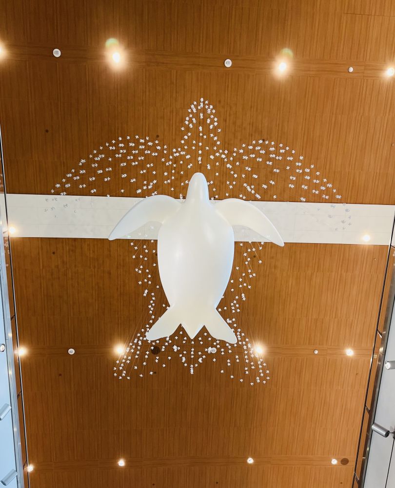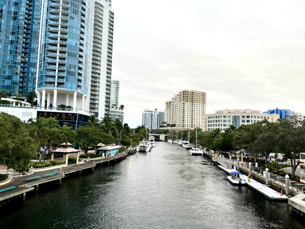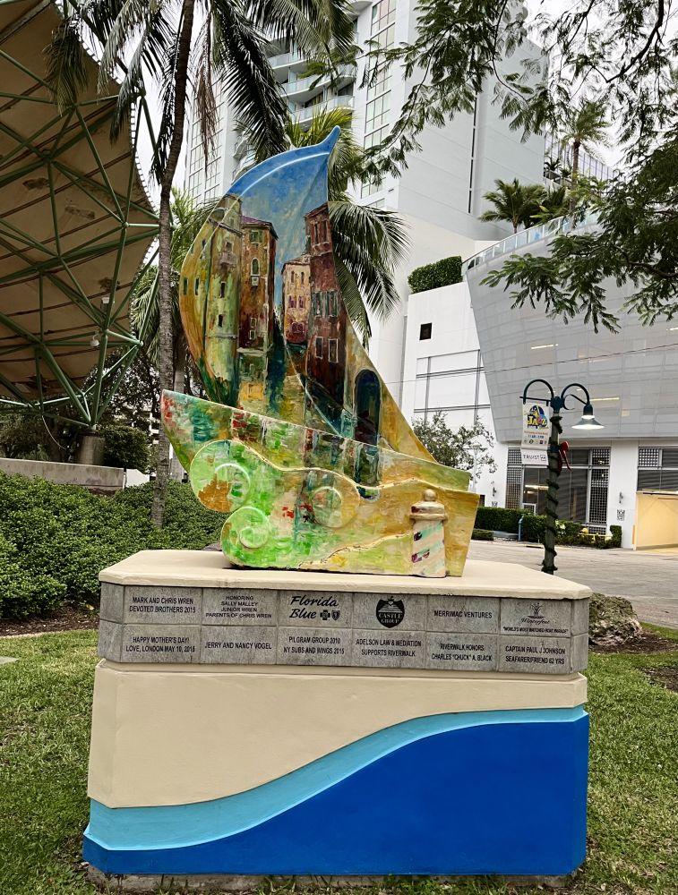 我们不敢久留,打个卡溜达了一会就继续向南赶往下一个目的地,位于Fort Lauderdale的网红雕塑“Thrive”。Fort Lauderdale 位于Miami以北30英里,是Florida第十大城市,城市为纪念第二次Seminole War 中的William Lauderdale上校而得名。很多人知道这个地方是因为Fort Lauderdale是加勒比地区几个邮轮航线的出发地,实际上Fort Lauderdale本身也是一座历史悠久,文化艺术资源丰富的旅游城市,风景秀丽,城里城外有不少地方值得一看。Thrive是由南非艺术家Daniel Popper 2021年创作,是一位女性半身雕塑,面庞像天使般纯净,一条通道从打开的胸口穿过,外部是混凝土结构,通道内侧种植绿色植物,雕塑象征一位坚强的女性敞开心扉展示丰富的内心世界。雕塑高27英尺,重14吨,位于居民大楼Society Las Olas的入口处,旁边是新河(New River)边的The Wharf Fort Lauderdale 户外酒吧娱乐活动场所,气氛热闹,一条沿河小路巧妙地结合自然风景和城市建筑,闹中取静。