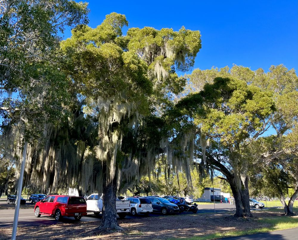 我们在Tampa休息一晚,第二天圣诞节,大家都起得晚,慢腾腾地吃过早午餐,然后驱车南下开始了这次Florida南下北上之旅。由Tampa向东南方向沿60-Florida's Turnpike-95驶向今天的第一站棕榈滩县(Palm Beach County)小城Delray Beach。这条路线斜着向东南穿过Florida半岛,历时三个半小时,一路上处处都是典型的老南方农场景色。高大的南方活栎树(Southern Live Oak)从车窗掠过,一棵棵挂着长长的西班牙苔藓(Spanish Moss),或者成片地生长在农场草地的周围,苍翠繁茂,或者独立于辽阔的草场中,粗壮高大。路边经过了很多养牛的农场,风格各异的入口小路两侧种满棕榈,高高低低参差排列,巨大的棕榈叶随风轻摆,像是对着马路上的车辆招手欢迎。农场里黑色白色黄色的牛群在草地上悠闲地吃着草,一群群洁白的美洲白鹮(American White Ibis)在农场边小溪里觅食嬉戏。偶尔也有几家农场是果园,果园里一行行果树整齐排列,虽然时至隆冬,果树依旧郁郁葱葱。蓝天白云下,牧场式房屋周围宽阔的门廊环绕,很少看到人,景色却是一派安静祥和。