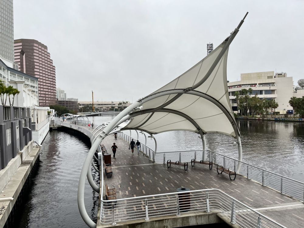 Tampa Riverwalk是一段沿Hillsborough River的步道,从东端的Channelside District开始向西经过Hillsborough River河口,转向北到Tampa Heights 社区,全长2.6英里 (4.2公里),将Tampa市中心几个重要的公园,景点,酒店,博物馆,艺术中心连在了一起,2016年建成之后立刻成为市内最重要的公众活动场所。Hillsborough River河上旖旎的自然风光,两岸漂亮的高楼大厦,跨河的大小桥梁组成了一幅幅美丽的城市风景,步道上骑车,散步,跑步的行人络绎不绝,步道旁边的一个个小公园就像项链上的珍珠点缀其间,也有不少大人孩子休闲嬉戏。Tampa 计划在Hillsborough River 西岸建设新的步道,新的步道延伸到更远的地方,最终和现在的步道组成一个全长8.6英里(14公里)的闭环 “Green Spine”,将为行人和骑车人提供一个安全方便环保的专用绿色通道。下次再来的时候,一定在Tampa 花个一两天的时间,走走步道,看看博物馆,品尝品尝当地美食。