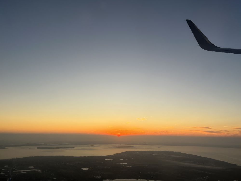 在机场的第三天,一月二日,星期一,凌晨四点多起床登机,交行李的队伍肉眼可见的快,十几分钟就交好了行李赶去安检,航班准时起飞,竟然在起飞的时候看到了日出,太美了!两个半小时的飞行一切顺利,九点多准时在费城降落。AA 和 Frontier 的对比简直不要太明显了,我们同机的有好几个家庭都是被 Frontier 放了鸽子改过来的,同病相怜,看到也都会心一笑。我又把几年没用过的Uber APP 翻出来,叫了个车带我们全家去Trenton的机场拿车,中午时分终于回到了新泽西的家里。离开时刚到新泽西的强冷空气早已远去,家里温暖如春,书房里的琴叶榕愈发碧绿。