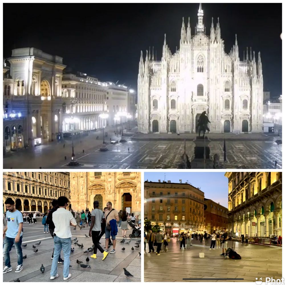 米兰大教堂前的广场还挺大的。广场上鸽子成群,围绕着人一点不陌生,喜欢与人群亲密接触,展示它们是广场的主人。夜幕下,这边有人拉着手风琴弹唱的,那边一个小伙子在尽情地跳街舞,一幅浪漫、和谐、艺术又热闹的场面在我们眼前呈现….