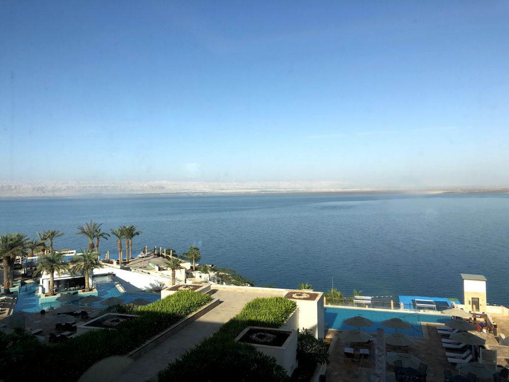 死海住Hilton 的resort 非常豪华漂亮,一到就洗澡,当然孩子们先去泡了。 这种大旅馆的安检非常紧张,车子彻查,才放进去,进去building 又要查包,过安检。 又是因为这个resort有自己的beach, 有Day Use 那种,所以DayUse的还不能带吃喝进去,我们可以,但还要填表,烦得很