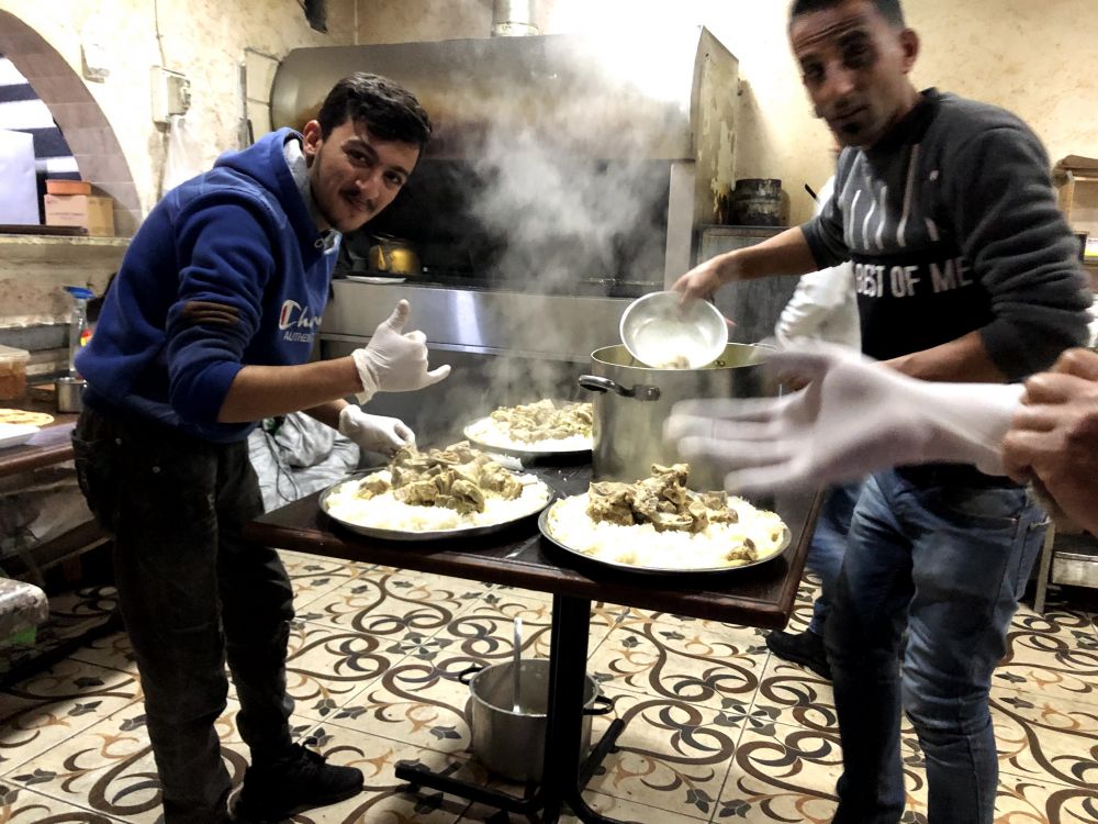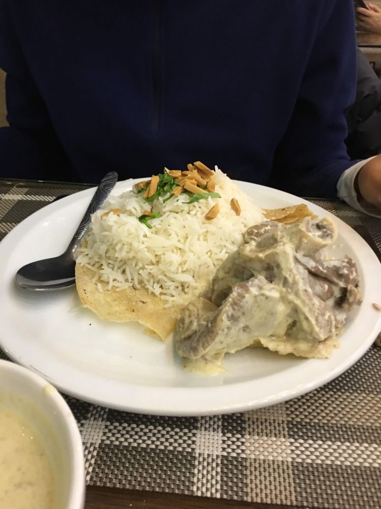 晚上我们到旁边一个小镇吃了约旦国菜,羊酸奶煮羊肉,还配原汤送饭,非常鲜美