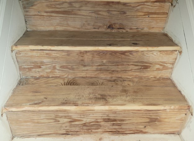 用 Citristrip 把楼梯 subfloor 的油漆都铲掉后又用清水擦了至少三遍,直到水差不多变清了,为之后新楼梯木板和底部粘结更牢固些