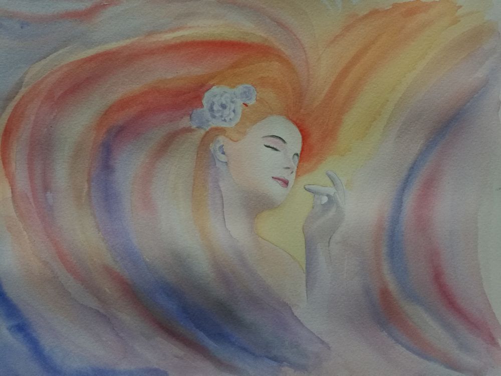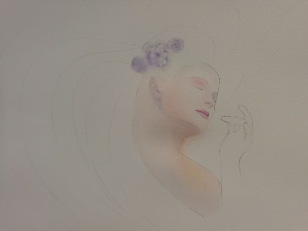 打完底稿后上了脸部颜色後感觉很棒,有一种朦朦胧胧的感觉。全部上完色後两相比较,还是觉得半成品更美,早知如此,就不费那个劲好了。