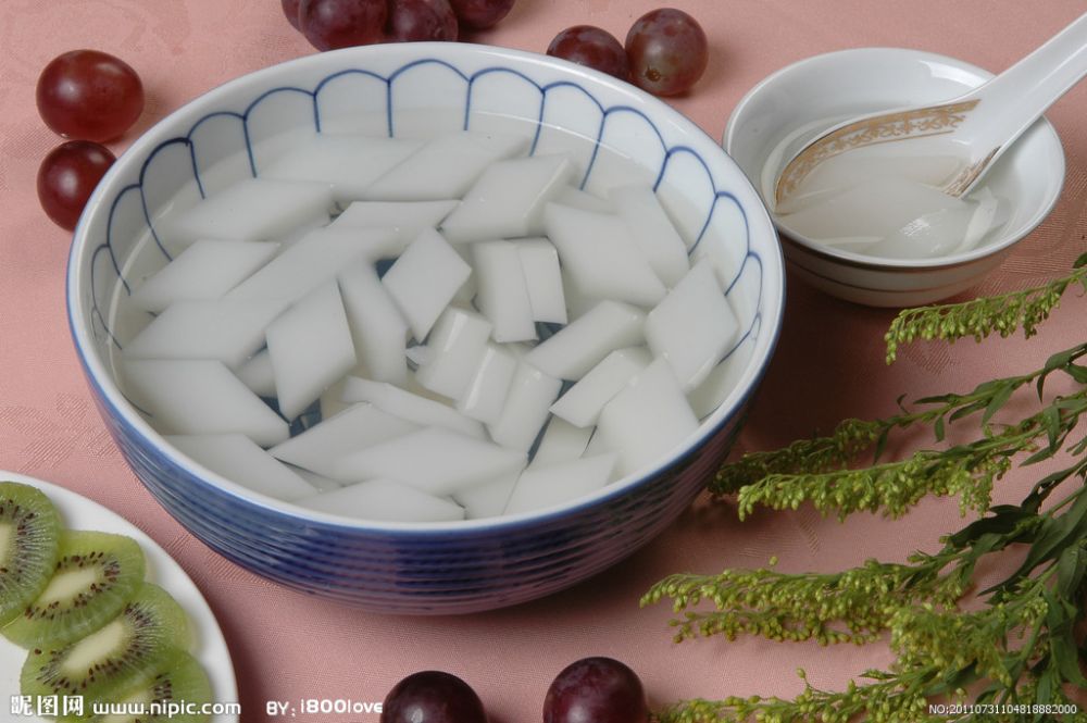 如果说麻豆腐和豆类还沾点边儿,那北京夏天的另一样也叫豆腐的小吃可就跟豆子完全不搭界了。那就是盛在小瓷碗里的甜品——杏仁豆腐。