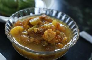 泡完后,水被果脯充分吸收,水位明显降低,只需一搅,柿饼自动化开,完全成胶状,再加入冰鲜藕片、桂花酱等,汤色呈鲜艳的琥珀色,汁浓而杏干有嚼头,愈嚼愈有酸味,食罢两腋生风,怪不得被赞为解暑极品,后从民间走入宫廷。