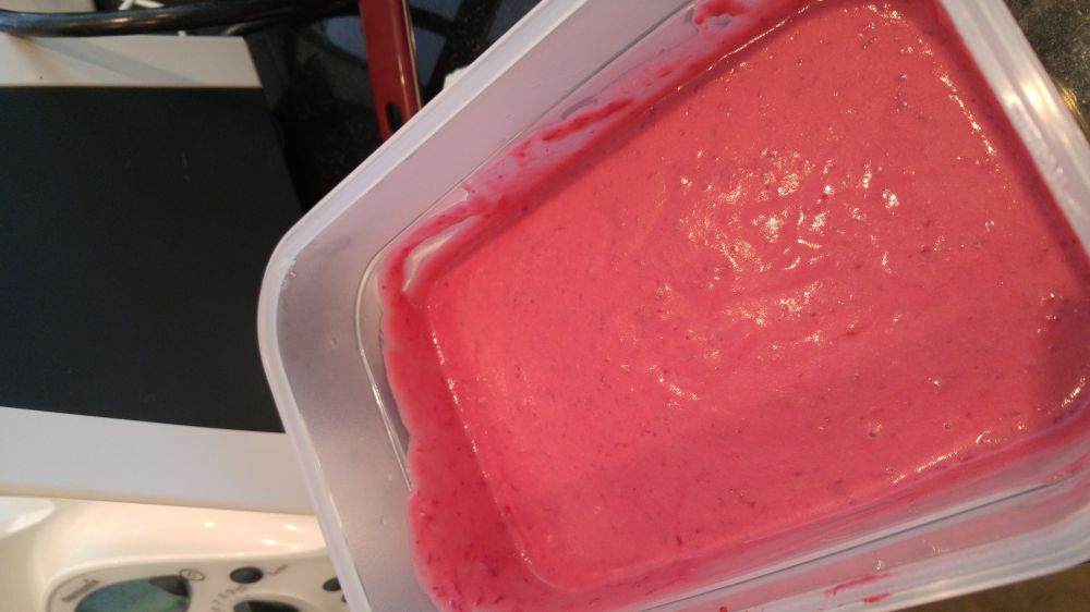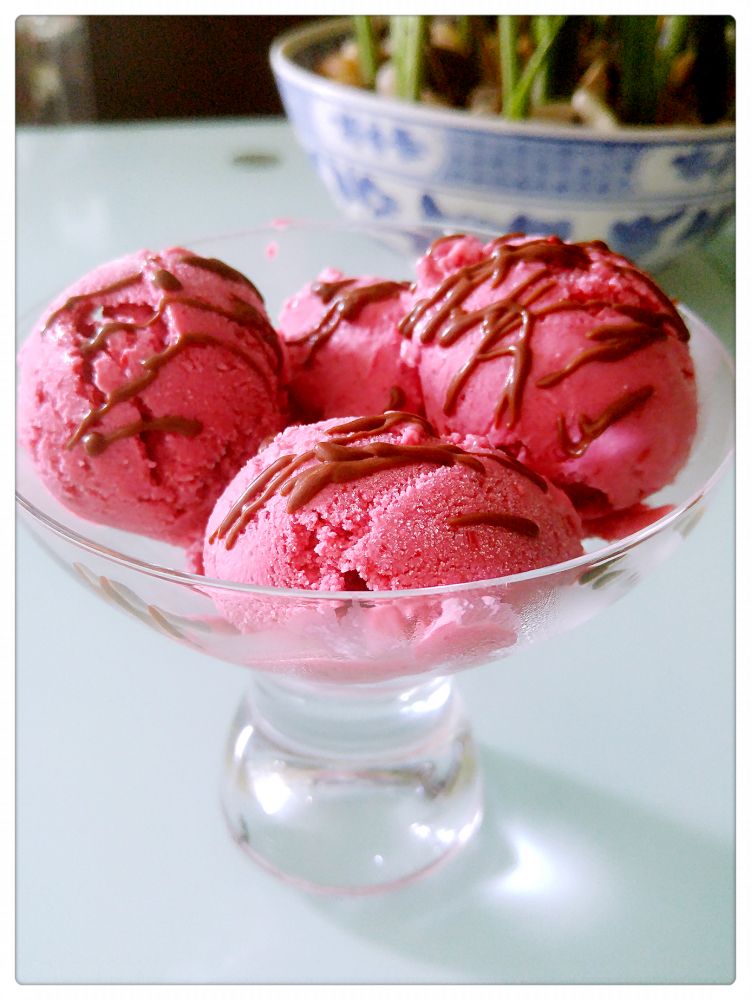*以上冰淇淋的做法为使用冰淇淋机的制作方法,也可以把做好的冰淇淋奶糊冰冻成块,放入thermomix 开高速打成泥状,但是感觉还是冰淇淋机器的口感好些。
