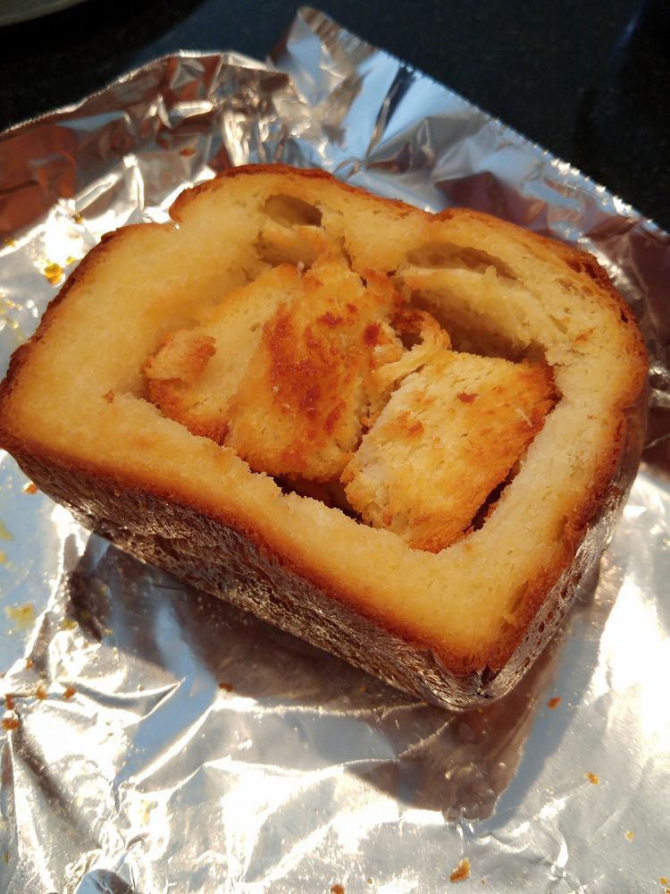 5,取出烤盘,把小面包片放回吐司中间,