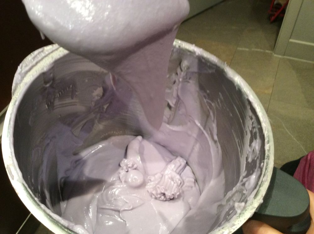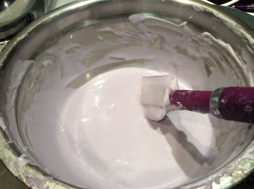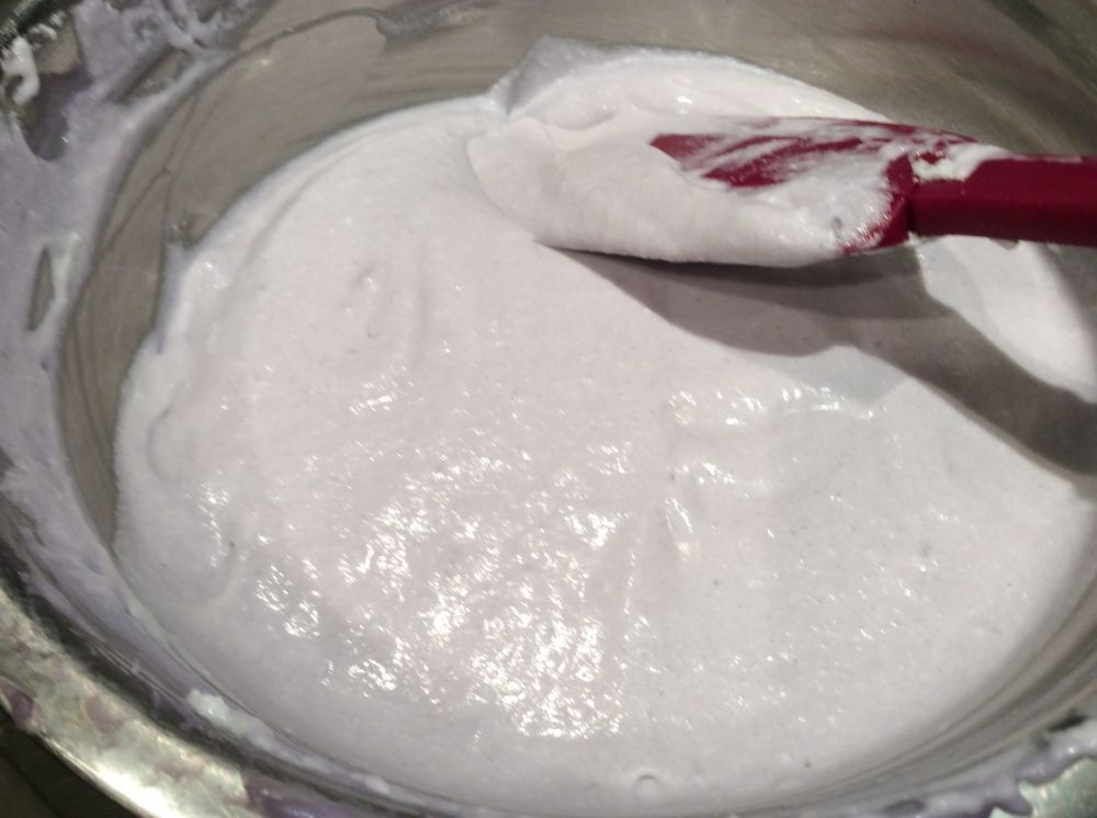 6,加入完全冷却的意式蛋白霜到4中的芋泥中,切拌均匀。