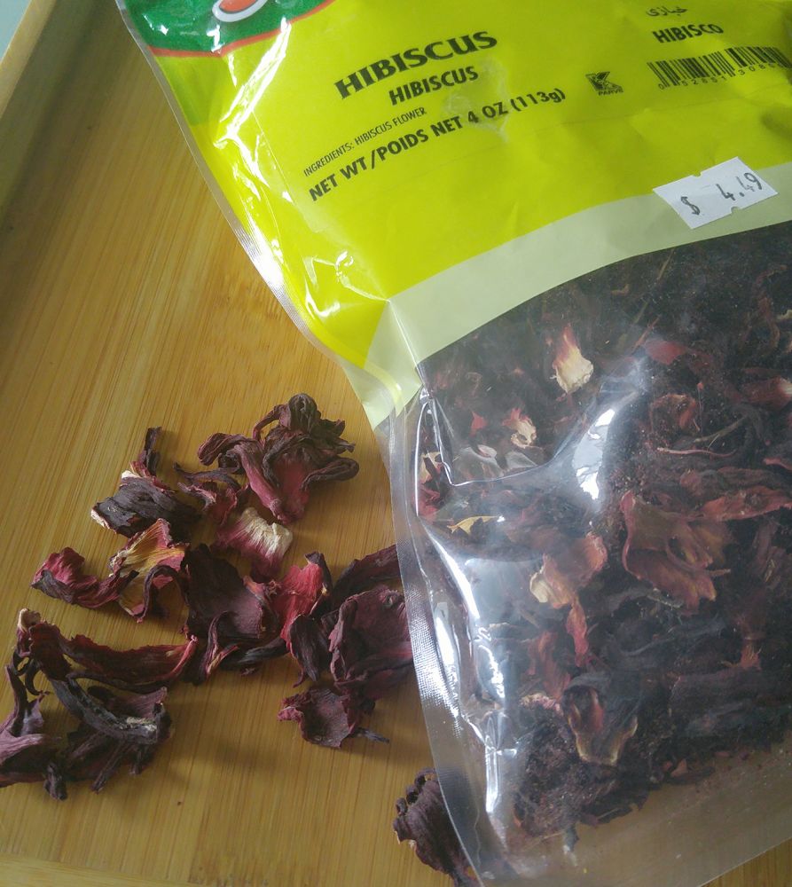 这次选择的花茶为产自伊朗的芙蓉花干(hibiscus),不仅味道酸甜可口,其艳丽的色彩也可以做天然的染色剂,