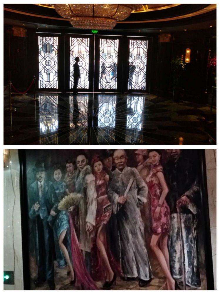 百樂門舞廳內大門內一景,穿著西身著西裝的守門人與廳內的的一些照片。上面這張照片里,舞客有老的,有年青的,有穿中式長袍的,也有穿西裝,馬甲,帶領帶的,但舞女们都是清一式露大腿的中式旗袍。以前的百樂門,在我們在上海的時期被稱為紅都劇場,屬二三輪影院,在解放前,卻是赫赫有名的舞廳,
