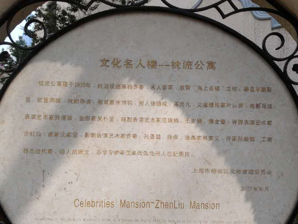 在蓊郁葱茏的法國梧桐樹掩映下的靜謐的華山路枕流公寓是上海的一代佳人周璇的曾經居住場所。從禸