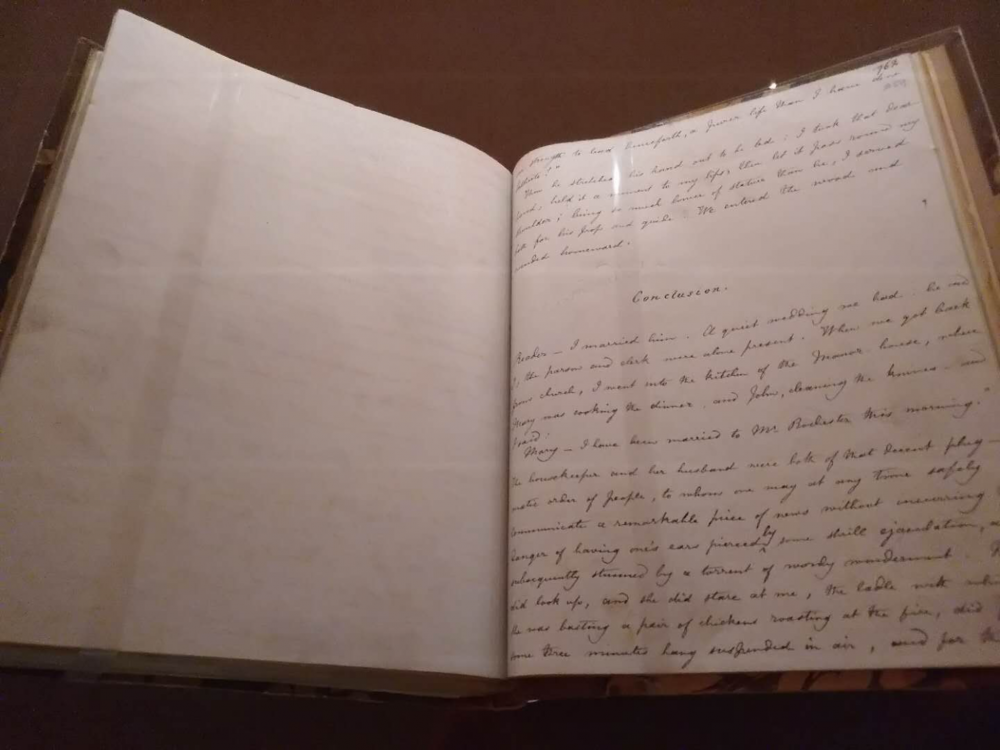 女作家夏綠蒂.勃朗特的巜簡愛》 Jane Eyre 寫于1847 年的誊寫本手稿第三卷的一頁。