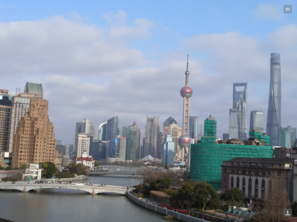 從蘇州河畔的大樓,舉目望去,外北渡橋,四川路橋,,東方明珠,上海大廈等盡收眼底。