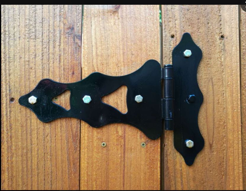 5. 再把另一半合叶钉到大门的木桩上。照此下去,钉好另一个合叶