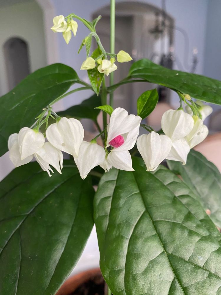 追问之下,得知花的名字叫【龙吐珠】,花如其名,很形象,其英文名字叫【bleeding-heart vine】。相比之下更喜欢中文名字。