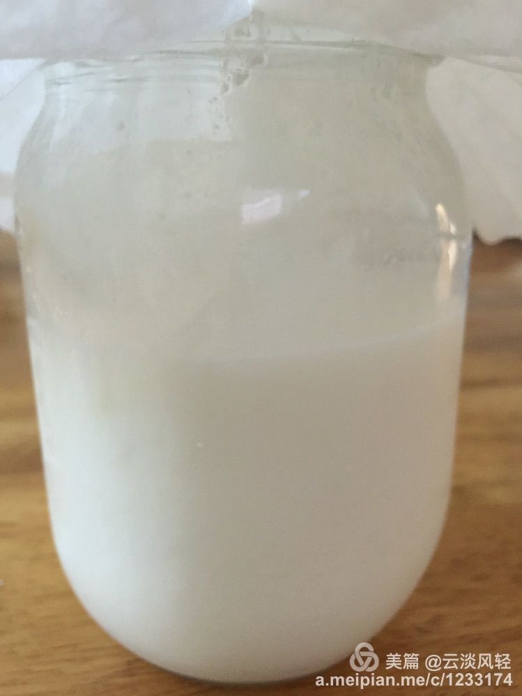 過濾好的Kefir牛奶,酸酸的,有股酒味,加些蜂蜜或枫糖漿口味會更加好,喝了養顏又健康。