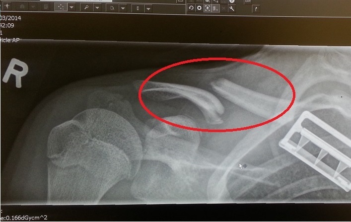 我们带女儿去医院的时候,因为天气乍暖还寒,急症室里等候的多是感冒发烧咳嗽的小病人。女儿在等候区神态自若地看书,好像没有任何病痛,似乎她是陪着患重度焦虑症的妈妈来看病的。终于轮到我们了,当护士看到女儿锁骨的X光片,突然从椅子上站起来:“你不疼吗?!” “有点儿,不过还能忍受。。。”让护士大惊失色的就是这张X光片: