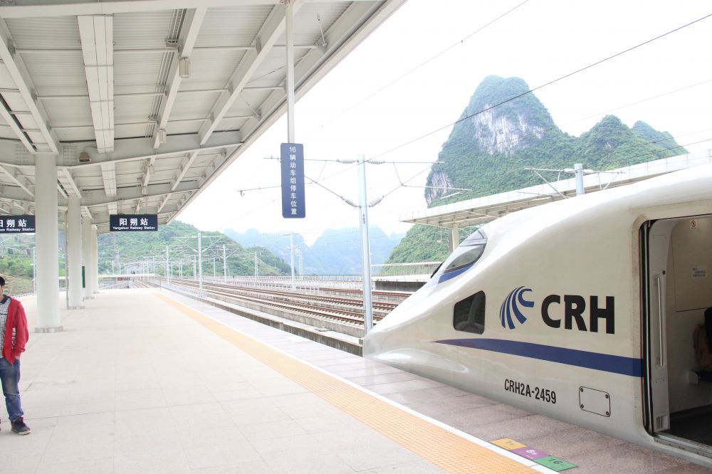 近几年国内高铁发展迅猛,几乎每年都有新的线路开出来。从肇兴侗寨所在的从江高铁到阳朔的高铁就是16年才修建成功的。这个意外的发现也坚定了我们去阳朔的信心 阳朔高特并不在阳朔城区,恰好就是我们要去的兴坪镇上。从江到阳朔的高铁只需要一个半小时,但是沿路都是穿山而过,无数隧道让倒腾同学目瞪口呆,景色也是令人难忘。