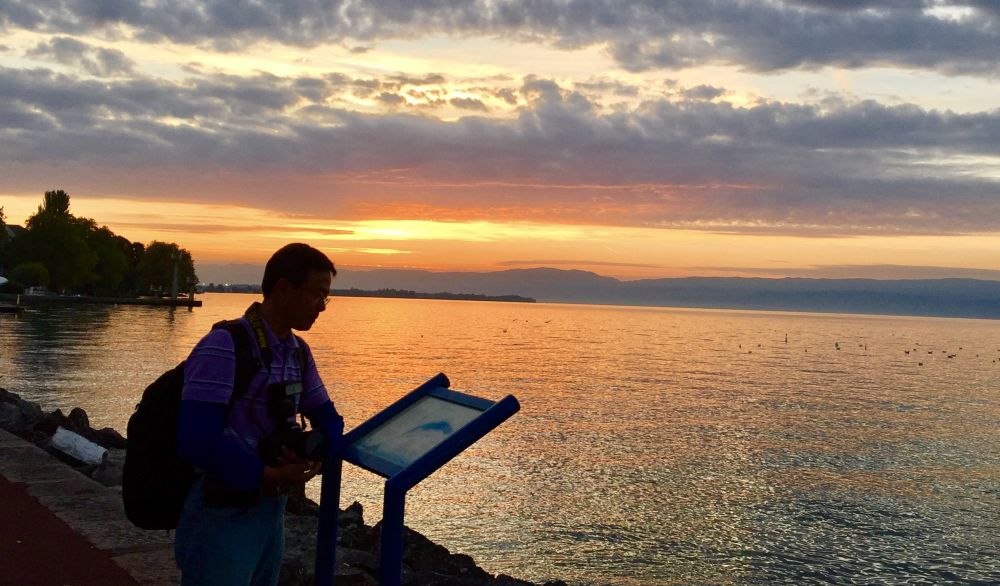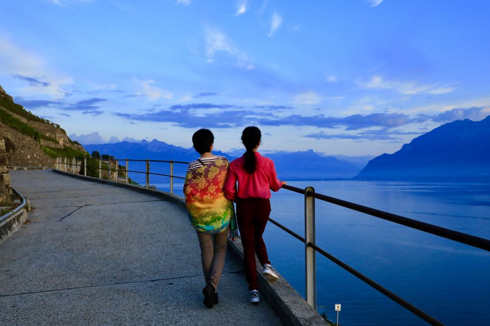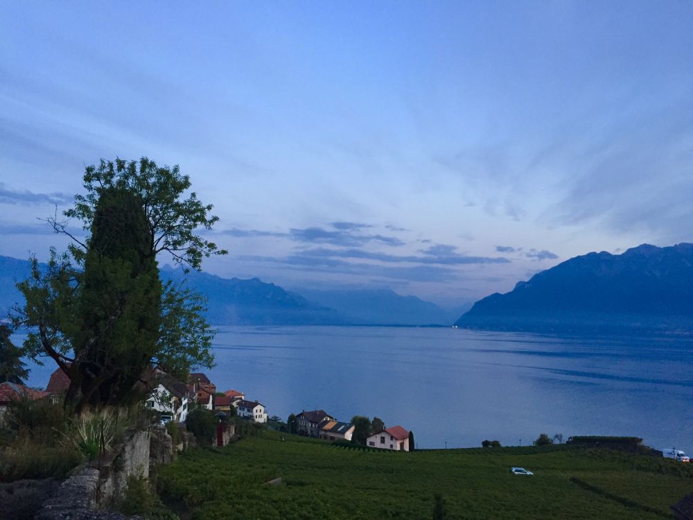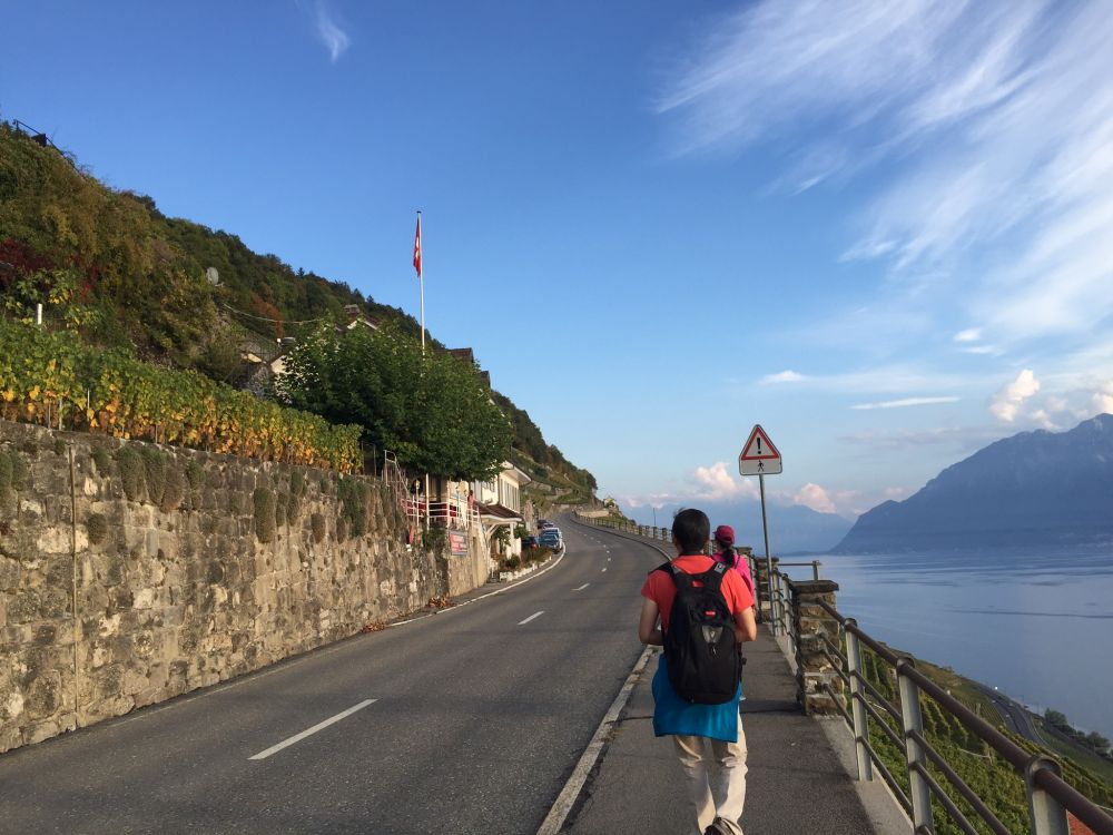 我们下榻Cully 小镇,在这里度过了舒适而浪漫的两晚。上午从Cully启程,沿着葡萄梯田中间的人行道横穿数个小镇,徒步约5英里,最后抵达Rivaz 。从一家歺馆用餐后出来,已是晚上9点。歺馆下方的火车站空无一人,站台列车表显示火车每小时一趟,最晚一趟11点半。到了9点40分,准点进站的列车丝毫没有减速的意思,在我们惊慌失措的目光中呼啸而过。