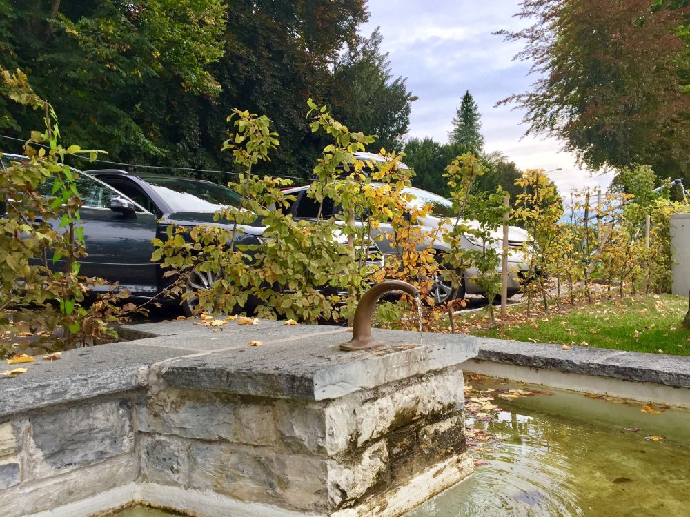 图恩湖水异常清澈,据湖边散步的当地居民讲,这湖水可以直接饮用。我们深信不疑,忙不迭拿着水果到湖边洗。LG站在露出水面的岩石上,正弯腰忙活,一个黑糊糊的东西从眼前划过,“扑通”落入湖底,LG喊了声“手机”,几乎一头扎进水里。幸而机面帖了保护膜,手机完好无损。回到路边停车场,猛然发现车前有个小水池,池边的水龙头正涌着涓涓细流,如山涧溪水般,长流不息。我们不禁哑然失笑。