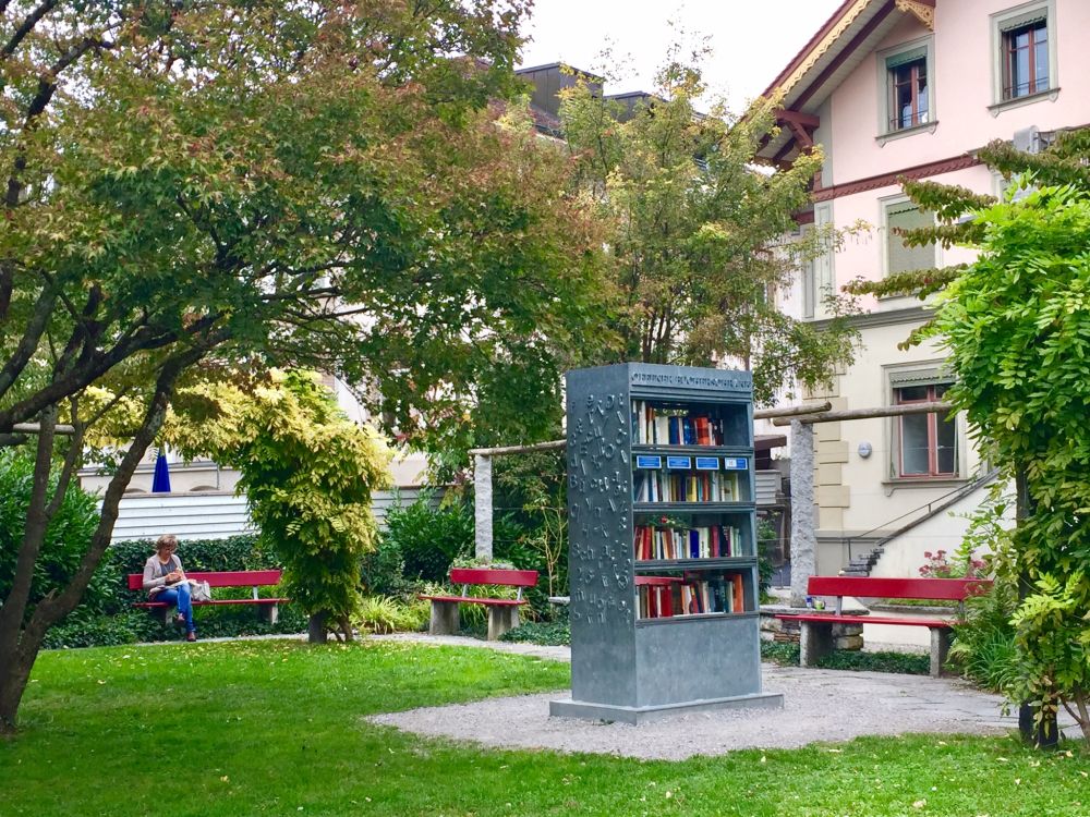 路边公园里的公共书柜。瑞士人喜欢阅读。火车上,公园里,随处可见人手一书。喜欢读书的人,心静神怡。